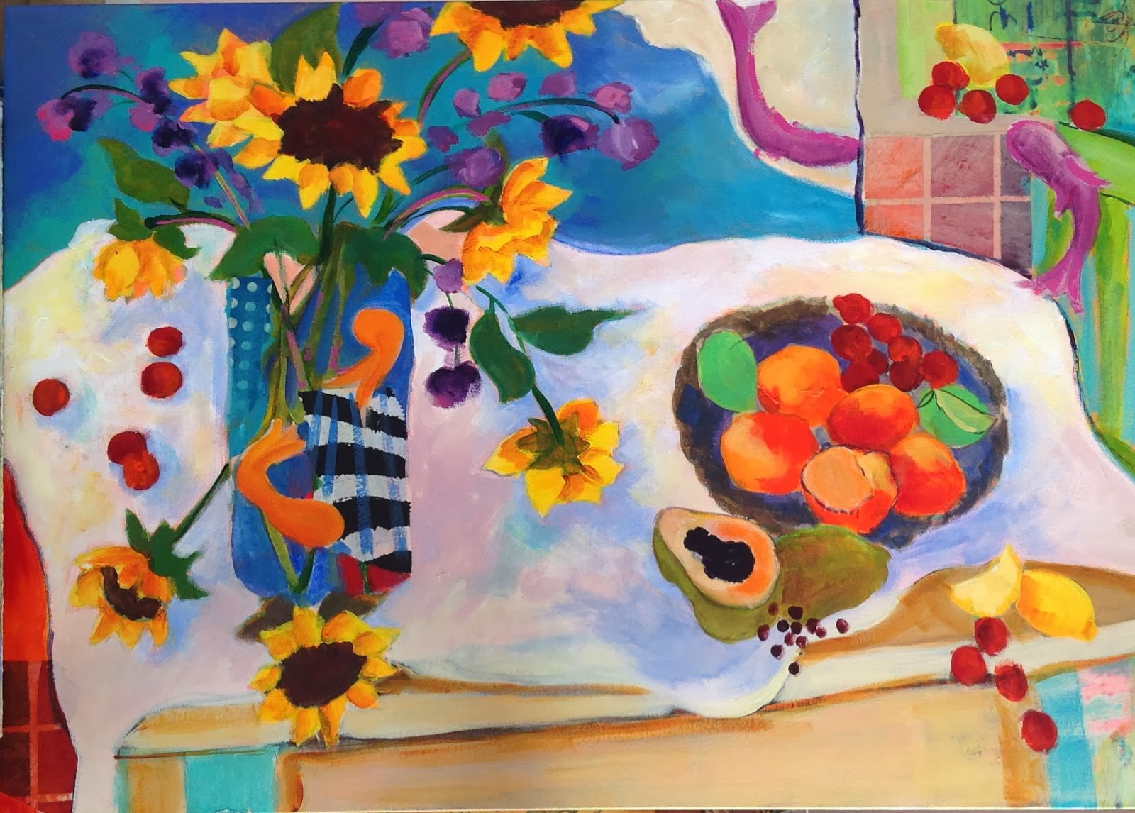 ReplyDeleteI see what you mean by FISH flying! I think of myself as such a pale-pastel person. Why do I love your bright colors and bold artwork so much? Maybe *because* my own is so pastel-ish. They do say opposites attract, right? Anyway, I love this painting, and it's fascinating to be able to watch you do it. Thanks for sharing your process.